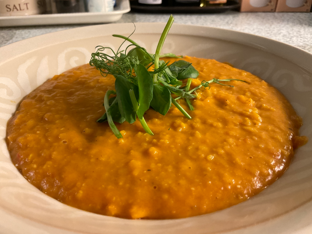 Soseuta keitto ja lisää halutessasi vielä 2-4 dl ruokakermaa, riippuen siitä miten keittomaista haluat. Kuumenna vielä hetki.