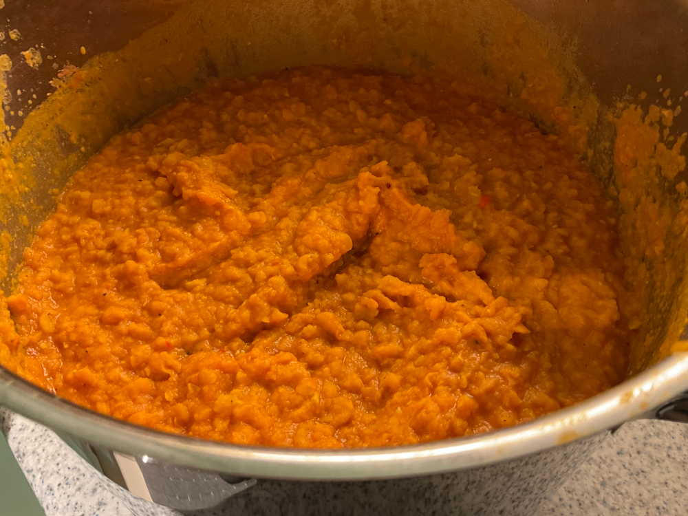 Keitä miedolla lämmöllä seosta kannen alla n. 1 tunti. Tarkista että neste riittää ja lisää tarvittaessa vettä.
