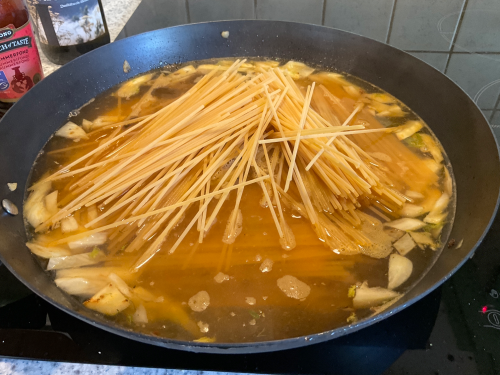 Lisää 300 g pastaa ja keitä n. 15 min.