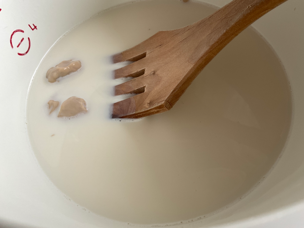 Hienonna 4 valkosipulinkynttä 360 g maustamattomaan tuorejuustoon.
