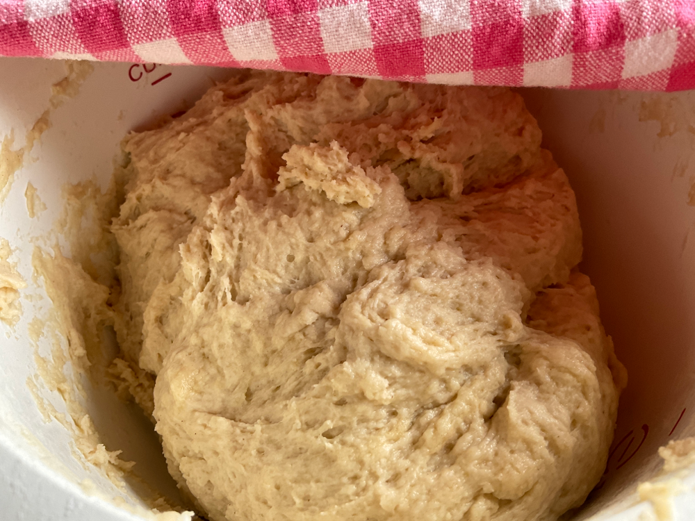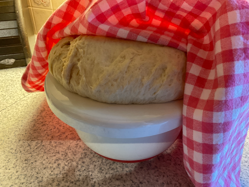 Anna taikinan kohota kaksinkertaiseksi liinan alla.