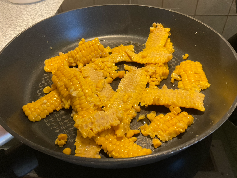 Leikkaa ja paista esikypsennettyjä maisseja pannulla.