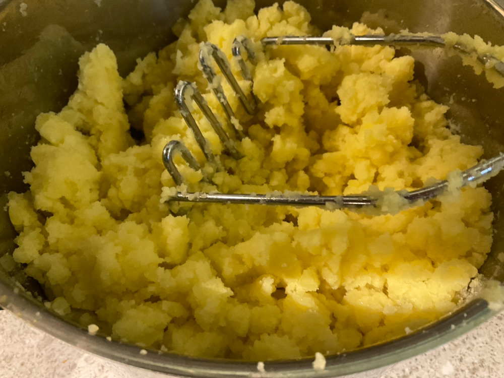 Kaada keitinvesi talteen ja survo perunat soseeksi.