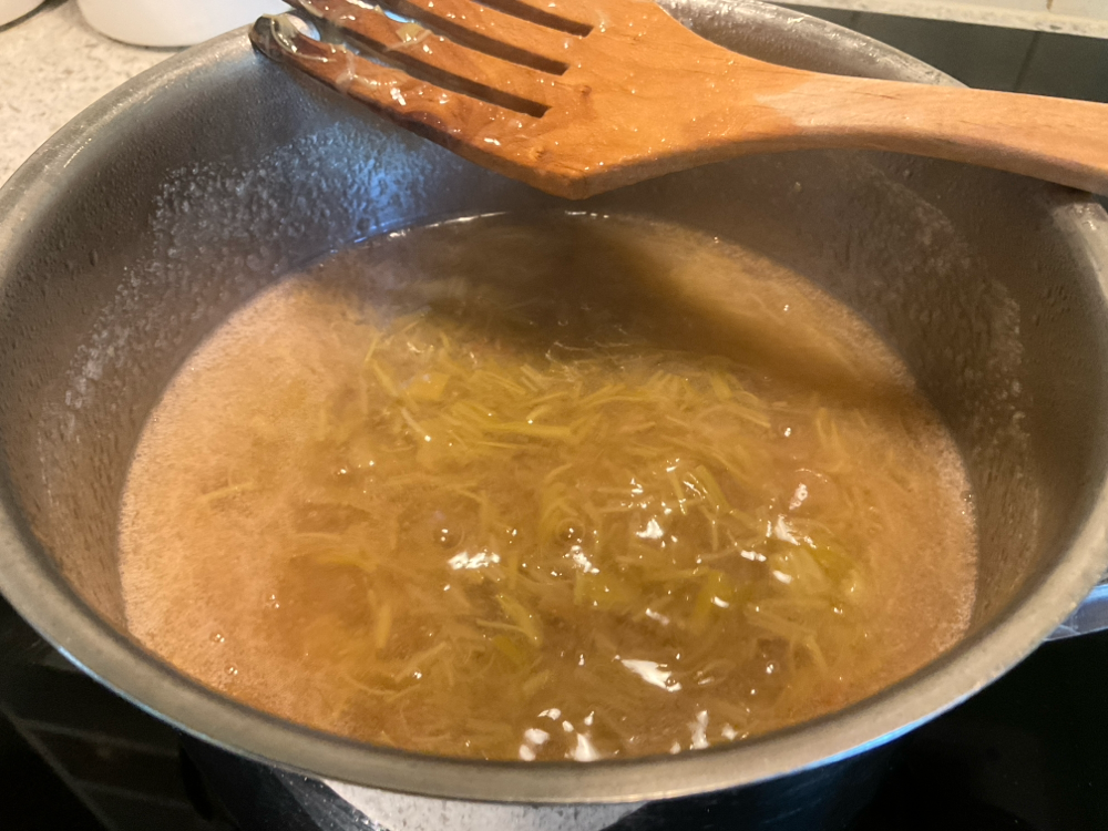 Kiehauta 8 dl vettä ja 2 dl sokeria.