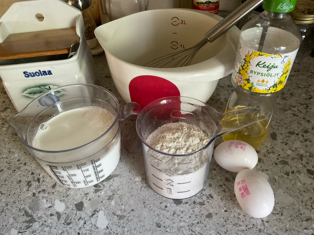 Jälkiruoat · 18. July 2025 Vohvelit Sekoita keskenään 4 dl maitoa, 3 dl vehnäjauhoja, 2 kananmunaa, 1/2 tl suolaa ja leivinjauhetta sekä 2 rkl öljyä. Anna taikinan turvota 15 min. Paista vohveliraudalla ja lisää tarpeen mukaan rasvaa. tagPlaceholderTags: Vohveli Write a comment Comments: 0