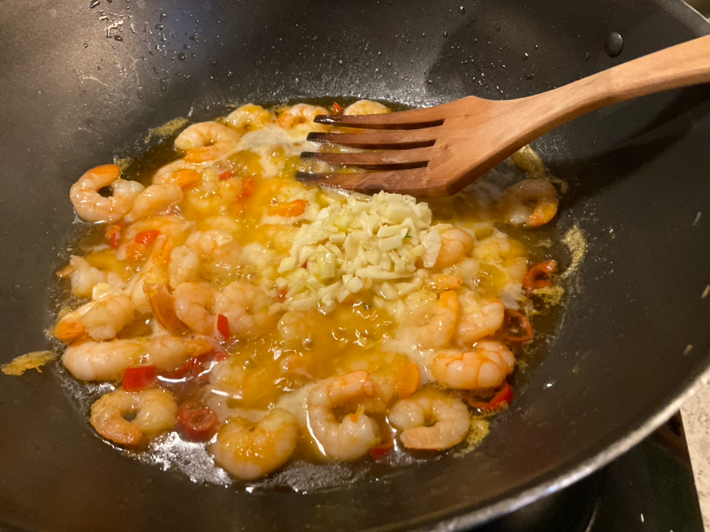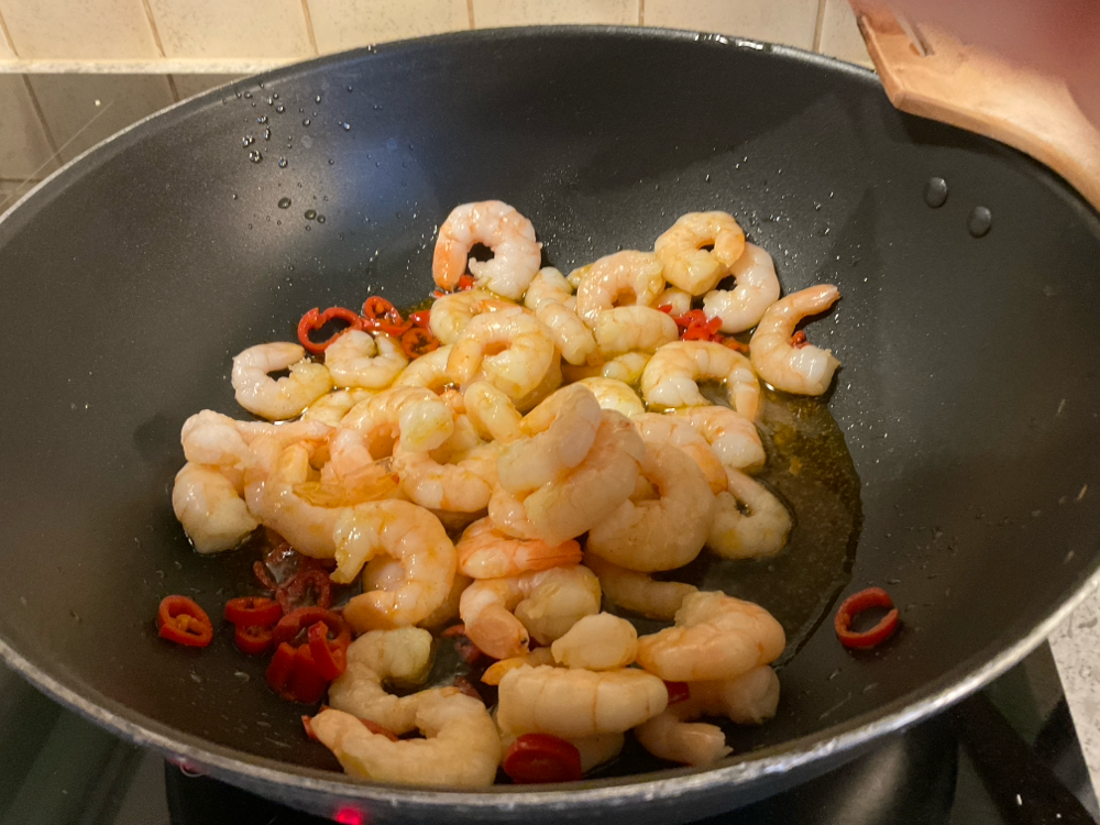 Lisää pannulle sulatetut ja valutetut katkaravut. Paista muutama minuutti.