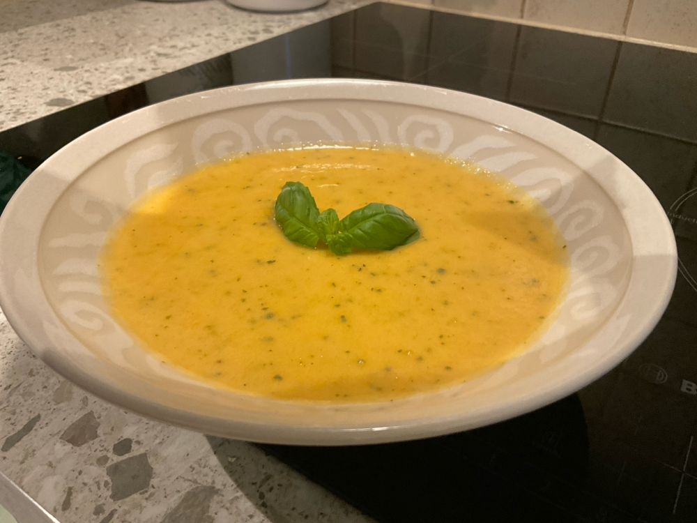 Keitä 5 porkkanaa, 1 kesäkurpitsa ja 1 makea sipuli pehmeiksi.