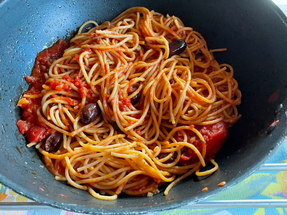 Tein tänään merellistä pastaa sardiineista. Kuvassa ainekset, mitä käytin valmistukseen. Mikäli haluat ruokaan tulisuutta, pilko pannulle mukaan 1 punainen chili ( mieto tai keskivahva). Paista wok-pannulla ensin oliiviöljyssä 3 pilkottua valkosipulin kynttä, kourallinen kapriksia ja kivettömiä tummia oliiveja sekä mahdollinen chili.