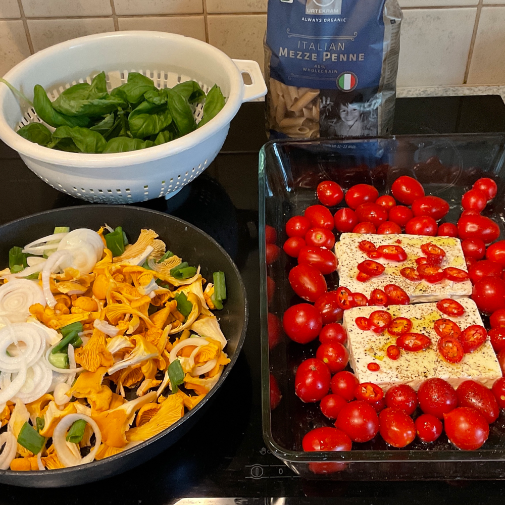 Laita laakeaan astiaan pohjalle ensin hieman öljyä. Lisää kaksi fetajuustoa, kirsikka-/luumutomaatteja ja pilko joukkoon 1 iso chili. Paista 200 asteisessa uunissa n. 15 minuuttia.